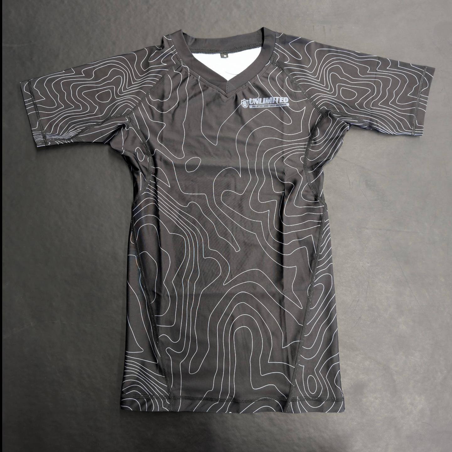 Our signature Unlimited Jiu Jitsu short sleeve rashguard, tailored with a ladies-specific cut, blends performance and style for a perfect fit on the mats. Featuring a black base with our exclusive topographic design, it’s built for athletes who demand both function and comfort.